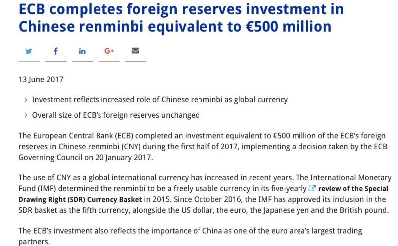 有史以来第一次,欧洲央行开始持有人民币外汇储备了!